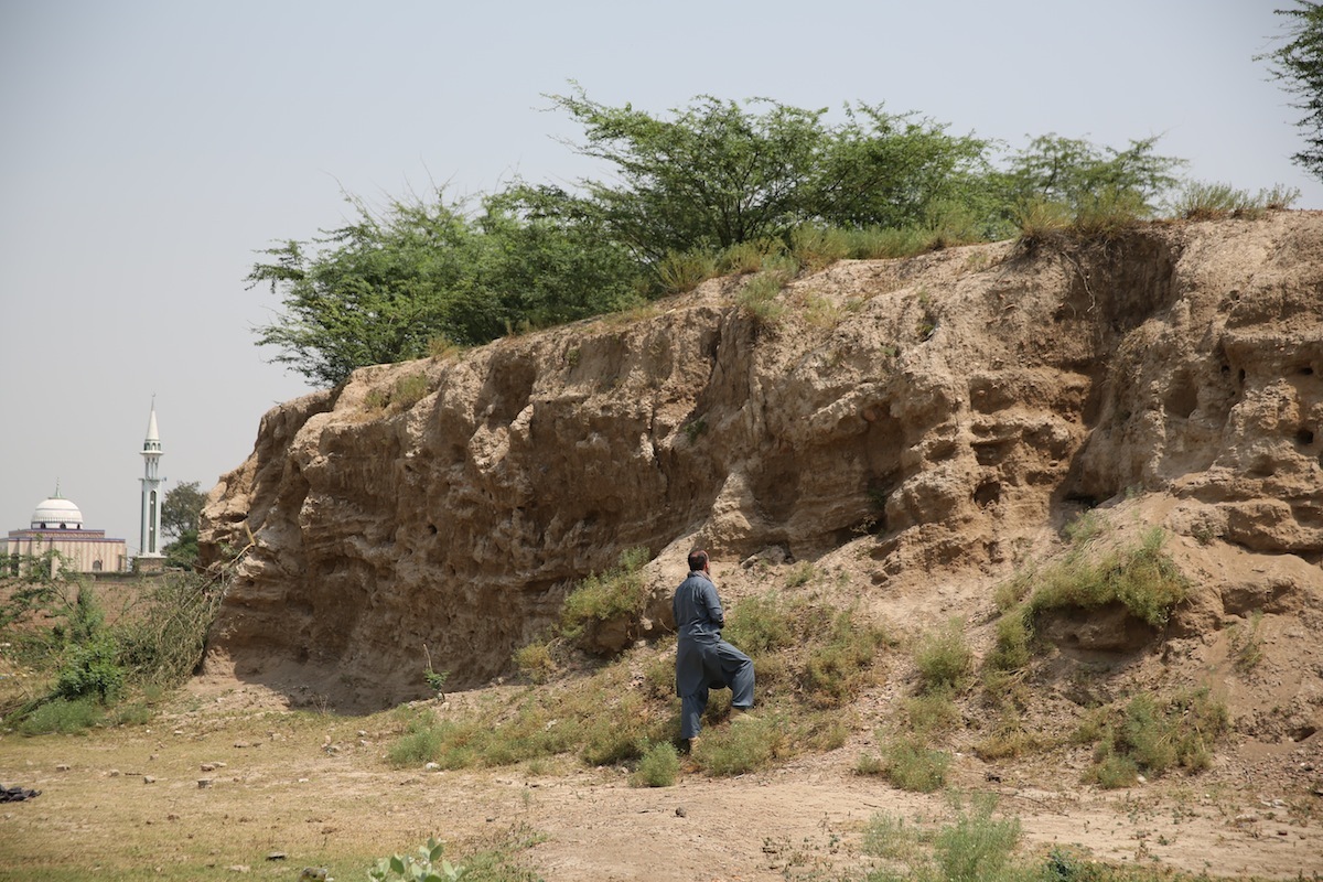 Tras mis estudios previos, seleccioné una aldea al oeste de Jhelum como candidata a ser Alejandría Bucéfala por lo estudiado, por la posición respecto al río, las montañas y a la pistas dejadas por las fuentes. Me equivoqué por ocho kilómetros. Me explico: en esa aldea previa, una formación que me había parecido un túmulo, resultó una colina de formas caprichosas, pero natural. Así es la naturaleza y la vida. Quiso la fortuna que, al pasar por otra aldea, a ocho kilómetros de allí, se me quedó grabada en la retina una enorme pared de adobe que me pareció algo extraño. Por la noche la corroboré en el Google Earth y lo vi claro: un círculo perfecto de 130 metros de diámetro.