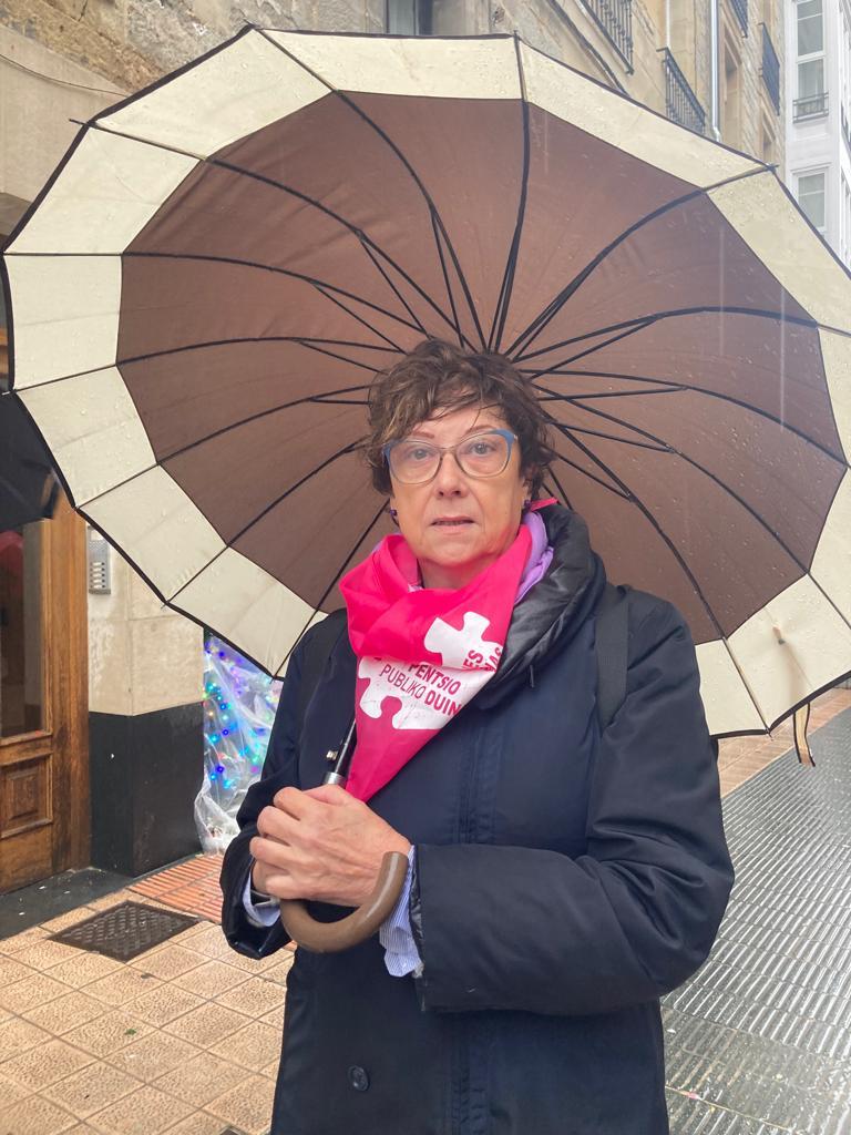 Las mujeres pensionistas no podemos estar bien cuidadas con tales pensiones de miseria y lo que pedimos es una pensión mínima de 1.080 euros para todas y, si la Seguridad Social no lo garantiza, que sea el Gobierno Vasco quien decida complementar esa pensión.