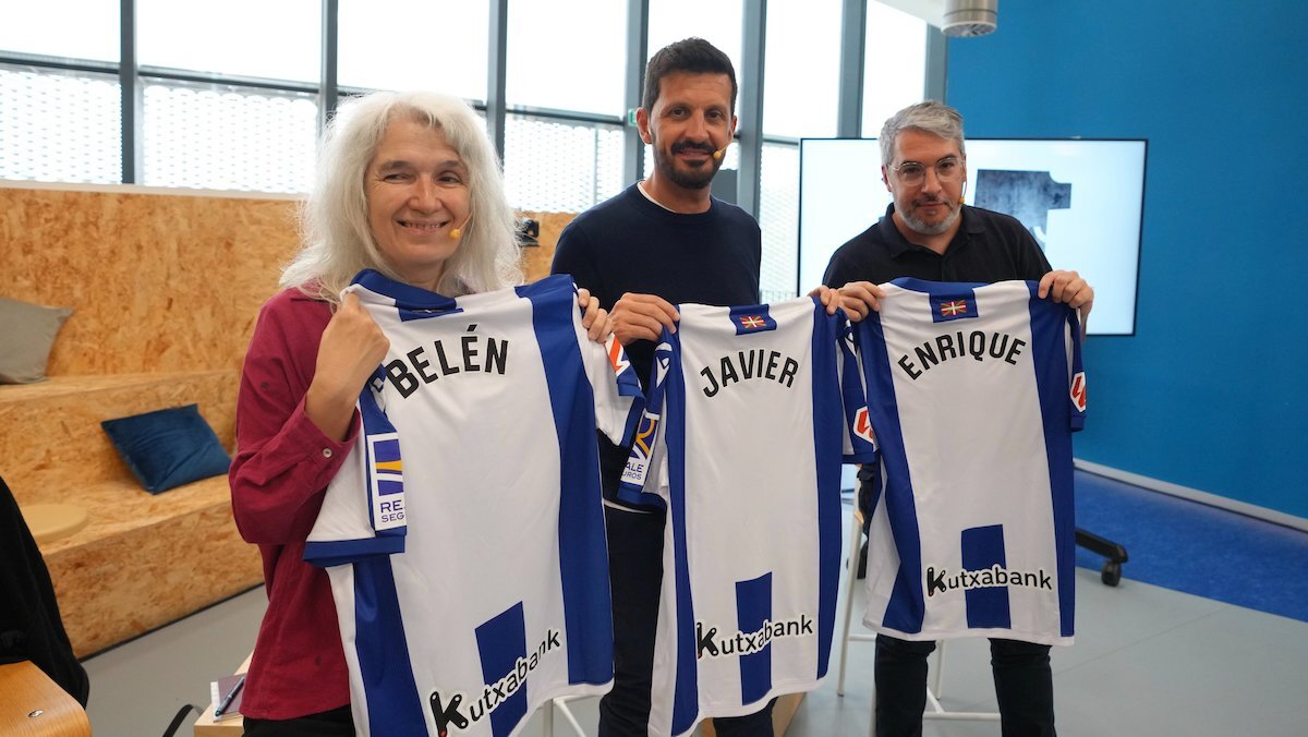 Eso mismo hicieron ayer en el LABe de Tabakalera el propio Ballester y Belén Gopegui, escritora, reconocida militante comunista y también autora en ‘El Descuento’, que compartieron foro con Javier Giraldo, uno de los creadores de la revista futbolística y periodista de ‘Sport’, como moderador en el coloquio ‘Fútbol con vermú: el descuento’. Se celebró dentro de la séptima edición de Korner Festibala, jornadas que aúnan fútbol y cultura impulsadas por la Fundación de la Real.