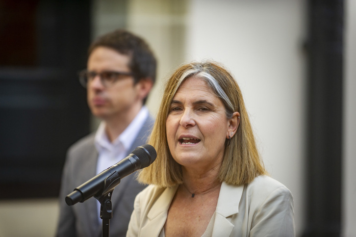 La portavoz, Nerea Kortajarena, anunció la candidatura de Pello Otxandiano. (Jaizki FONTANEDA | FOKU)