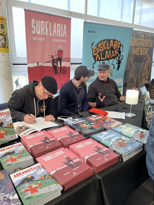 Beste hainbat jarduerekiko bazterrean uzten badute agintariek komikigintza, kulturgintzaren barruan ere bazterrekoa da? «Bai. Guk bi kultura zapaltzaile ditugu alboan, frantziarra eta espainola. Iparraldeko jendeak komikiak beste era batera bizi du. Kultura frankofonoan komikiak badu beste errespetua. Hegoaldean komikia oso bazterrekoa izan da, haurrentzako zerbait. Zorionez, azken urteotan dezente aldatu da hau. Kultur prentsak bai kultur zaleek beste era batera begiratzen diote komikiari. Hori gertatu da komikiak ere bere bideak eta bere estiloak zabaldu dituelako. Gaur egun euskaraz ere denetatik aurki dezakezu, oso gai ezberdinak komikian jorratuta eta oso estilo desberdinarekin. Alde horretatik irakurle izateko garai oparoa da, sortzaile izateko ez da garai oparoa inoiz izango –irribarrez–. Oraindik nahiago nuke harrera hobexeagoa, zeren nik uste dut ondo ari garela euskal komikigileak. Bai kuantitatibo bai kualitatiboki, urtero errepikatzen den ekoizpena kontuan hartzekoa da».