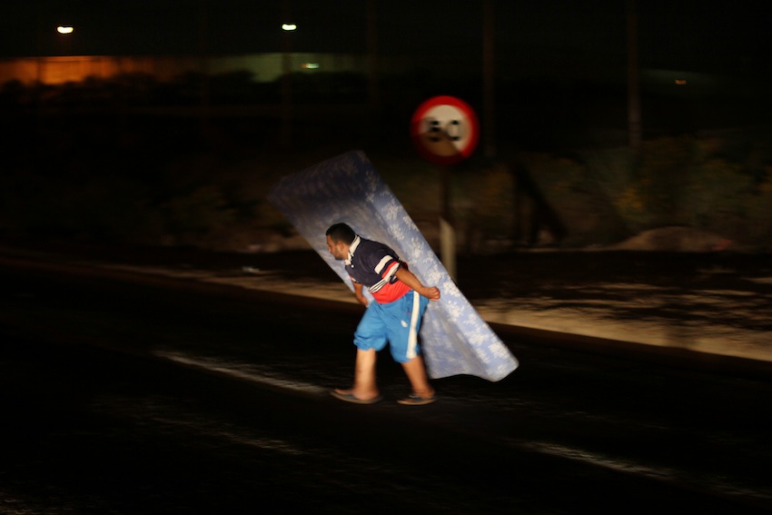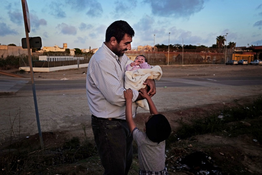 Otras familias, con más poder adquisitivo, deciden alquilar habitaciones en hostales de la ciudad mientras esperan su salida. «Hemos pasado por Turquía, allí nos quedamos un par de días, conseguimos pasaportes falsos para salir con ellos (a 500 euros) hacia Argelia. Allí quedamos con un hombre que trabaja en el contrabando para que nos pasara a Marruecos. Después de un viaje en mitad de la noche –la situación era muy peligrosa–, llegamos a Marruecos. Llegamos a Oujda a la una y media de la madrugada y allí cogimos un coche a Nador. Todos los sirios han pagado a la gente que trabaja en el contrabando. Yo he pagado 1.500 euros para cruzar a Melilla, pensando que llegamos a Europa. Ya estamos en paz, pero por desgracia lo que encontramos en Melilla es gente en tiendas de campaña, durmiendo en la calle, una mala vida».