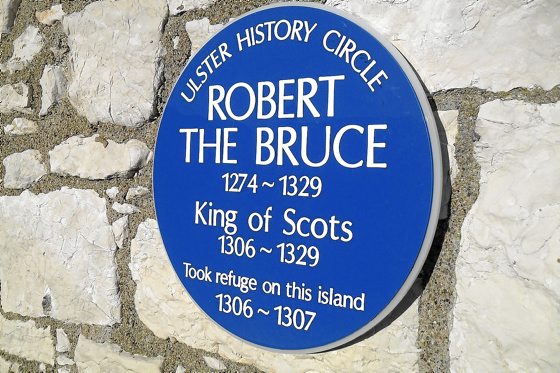 Agian, baina, ezagunagoa da Rathlin uhartea Robert the Brucen babesleku izateagatik eskotoen tribuaren erresumaren parte izateagatik baino. Robert de Bruce –edo Roberto I.a– Eskoziako erregea izan zen 1306tik 1329an hil zen arte. William Wallace baino ezezagunagoa izanagatik –Hollywooden erruz bereziki–, Wallacek besteko garrantzia dauka Brucek Eskoziako historiaren orrialdeetan. Errege izendatu bezain pronto, ingelesen aurkako kanpaina abiatu zuen Brucek, baina militarki hainbat gudutan porrot egin ostean Eskoziatik ihes egin beharrean suertatu zen.