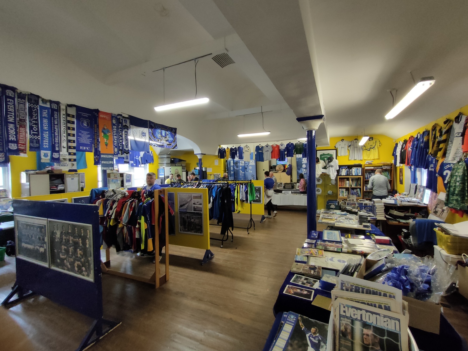 Lo primero que hicimos fue acudir a la St. Lukes Church, la única iglesia pegada a un estadio que se conoce en la historia del fútbol británico, y que fue creada 9 años antes de que el Everton decidiera jugar en su campa adyacente. En su interior, en el piso de arriba opera la EFC Heritage Society, que cuenta con diferentes proyectos, que albergan desde exhibiciones, venta de camisetas, pins, libros, fanzines; todo con fines solidarios.