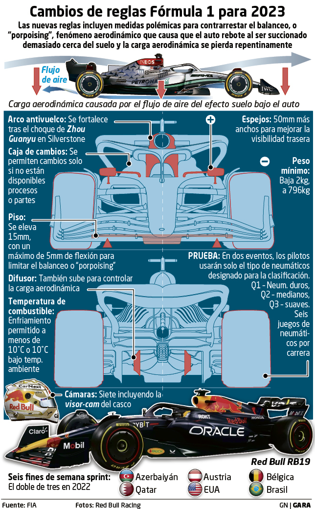 Sin embargo, la F1 ha hecho valer la seguridad y ha aumentado en 15 milímetros la altura mínima del alerón delantero y en 10 milímetros la parte exterior del fondo plano. Además, la Fórmula 1 colocará un nuevo sensor para medir este marsopeo, garantizando así que se cumpla la normativa y la seguridad de los monoplazas.
