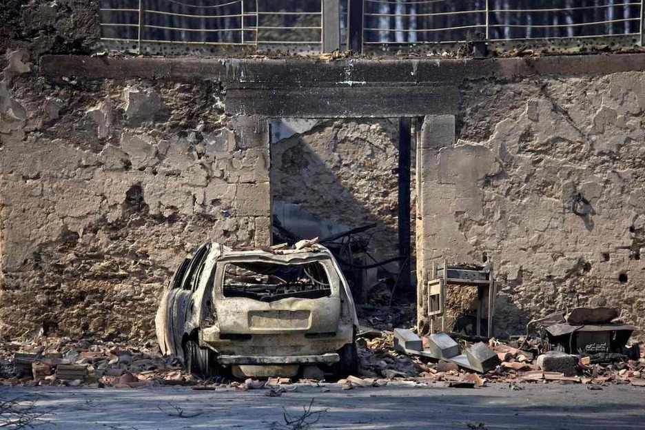 Una vivienda destruida por el incendio en Belin-Beliet, cerca de Hostens. (Guillaume SOUVANT | AFP)