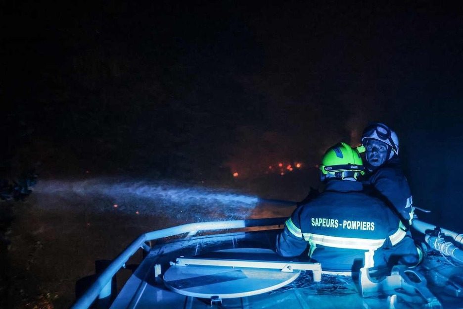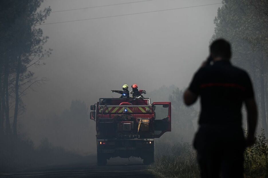 Bomberos, paso a paso, van apagando el incendio desatado en las Landas y la Gironda. (Thibaud MORITZ | AFP)