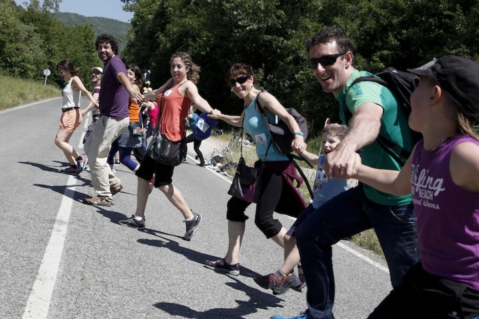 Dantzarako denbora ere izan da giza katea abiatu aurretik. (Joseba ZABALZA/ARGAZKI PRESS)