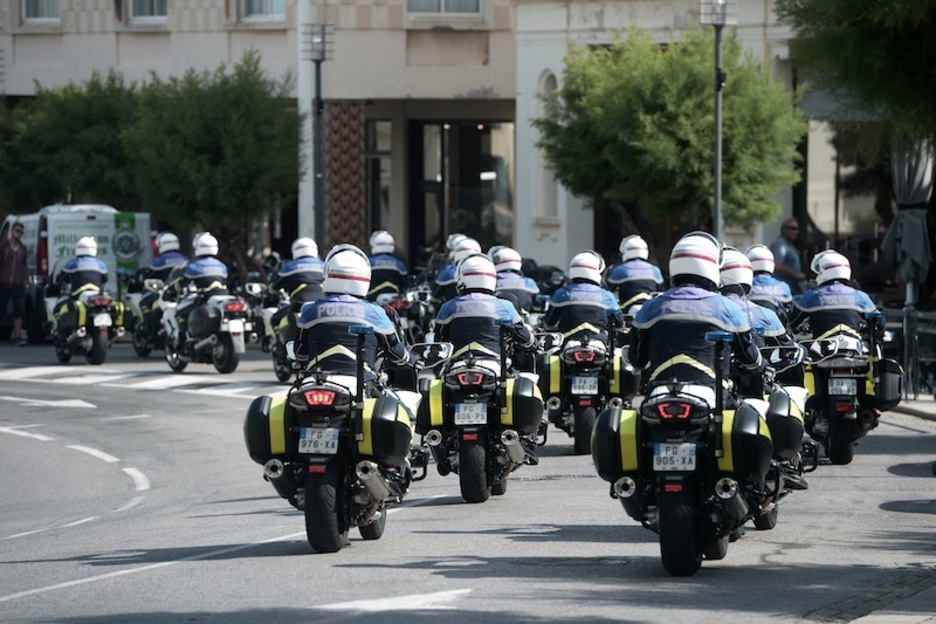 Decenas de agentes motorizados, en las calles de Biarritz. (Gaizka IROZ | AFP)