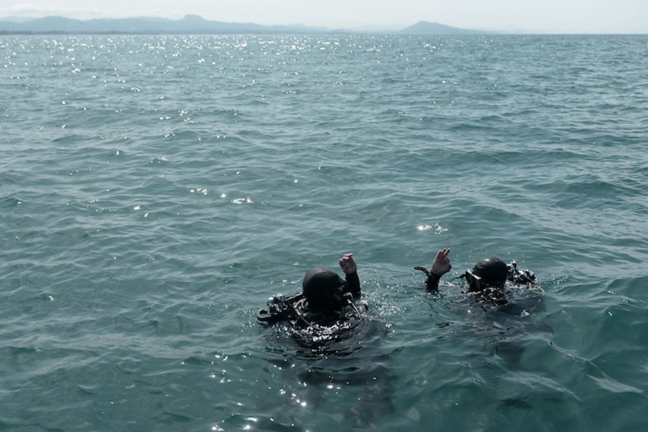 Submarinistas inspeccionan la bahía biarrota. (Gaizka IROZ | AFP)