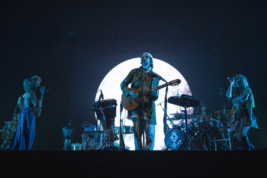 Argiztapen eta jantzi bereziekin, Crystal Fightersek ikuskizuna aparta eskaini du. (Aritz LOIOLA | FOKU)