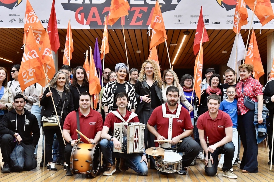 AEK hainbat kide eta Kittu txarangakoen argazki bateratua, ZEID Fest hasi aurretik. (Mikel MARTINEZ DE TRESPUENTES | FOKU)