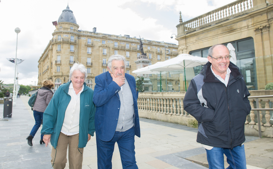 Con Lucia Topolansky, también exprisionera y senadora además de compañera de vida, en una visita a Bilbo. (Luis JAUREGIALTZO | FOKU)