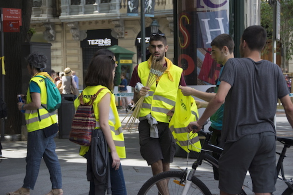 La reivindicación se ha mezclado con el ambiente festivo. (Luis JAUREGIALTZO/FOKU)