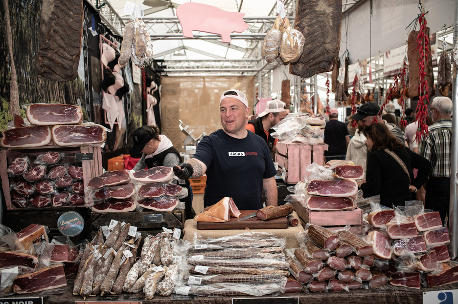 Ostegun goizarekin zabaldu da Baionako 562. Xingar Feria, urdaiazpiko saltzaileen aterpean. (Patxi BELTZAIZ)