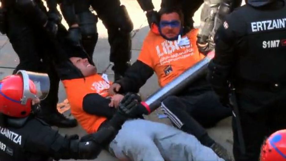 La Ertzaintza ha arrestado en Gasteiz a Aiala Zaldibar, Igarki Robles e Ibon Esteban tras desmantelar por la fuerza el muro popular conformado para arropar a los jóvenes condenados por la Audiencia Nacional española a seis años de prisión por su actividad política. Más de tres horas ha necesitado la Policía autonómica en una operación en la que han participado alrededor de un centenar de agentes, que se ha saldado con alrededor de 20 detenidos y 70 heridos.