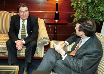 John Hume, Nobel de la Paz, recibido por el lehendakari Ibarretxe en la Bolsa de Bilbo.