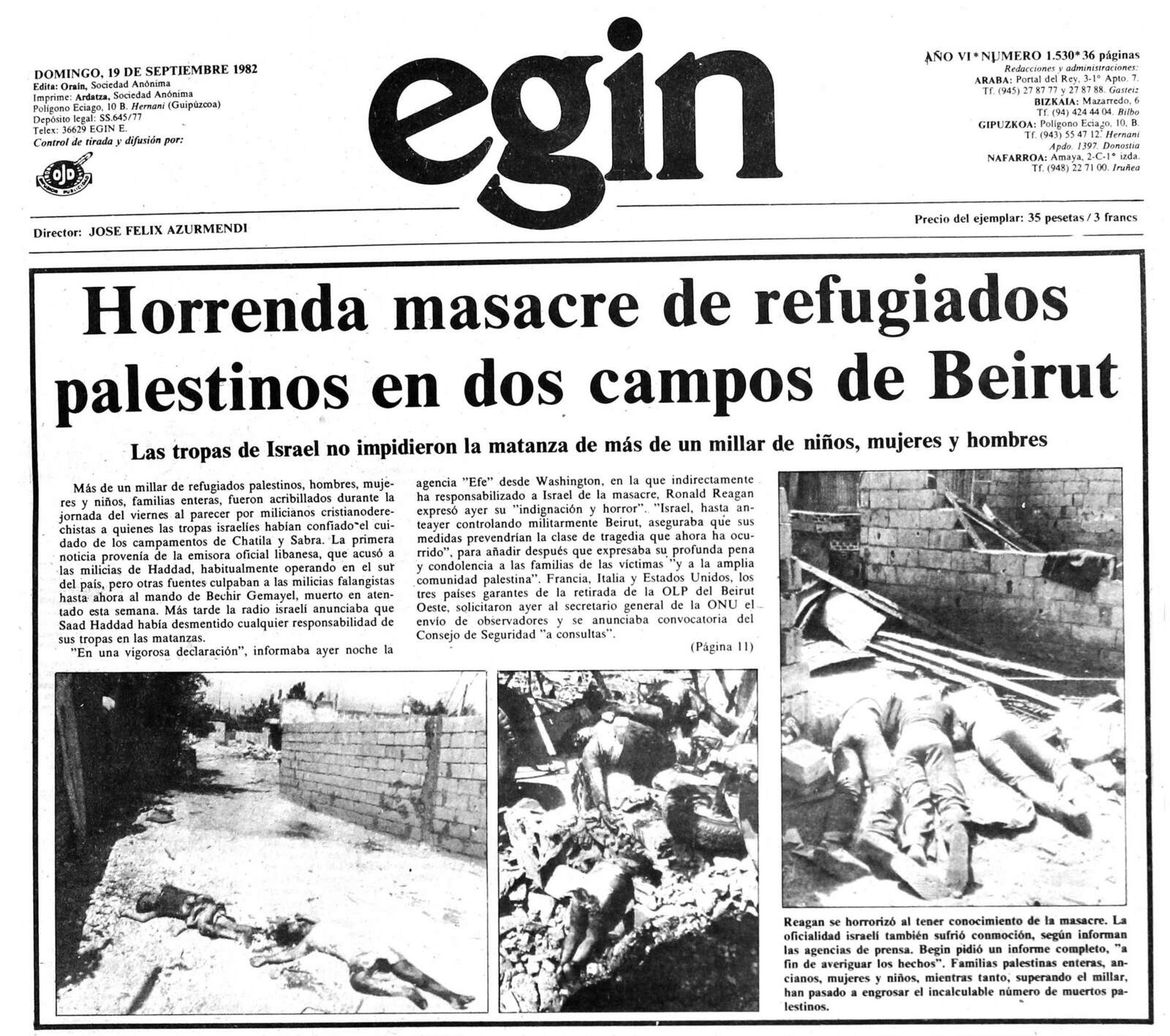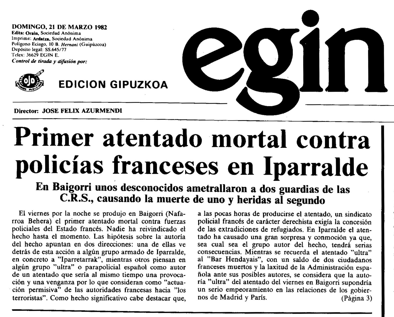 Portada de 'Egin' del 19 de septiembre de 1982.