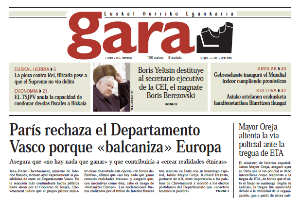 GARA nació en un tiempo de ilusión y de miradas de esperanza hacia un futuro diferente. El Acuerdo de Lizarra-Garazi alimentó expectativas de resolución desde parámetros de soberanía y territorialidad, precisamente las raíces históricas del conflicto.