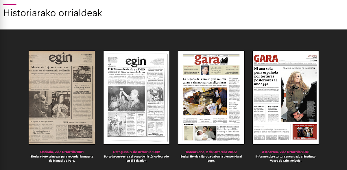 2024ko egun bakoitzean, azken mende erdian data horretan bertan izan diren gertaera garrantzitsuenen erreportaje, argazki, azal eta iritziak eskainiko ditugu.