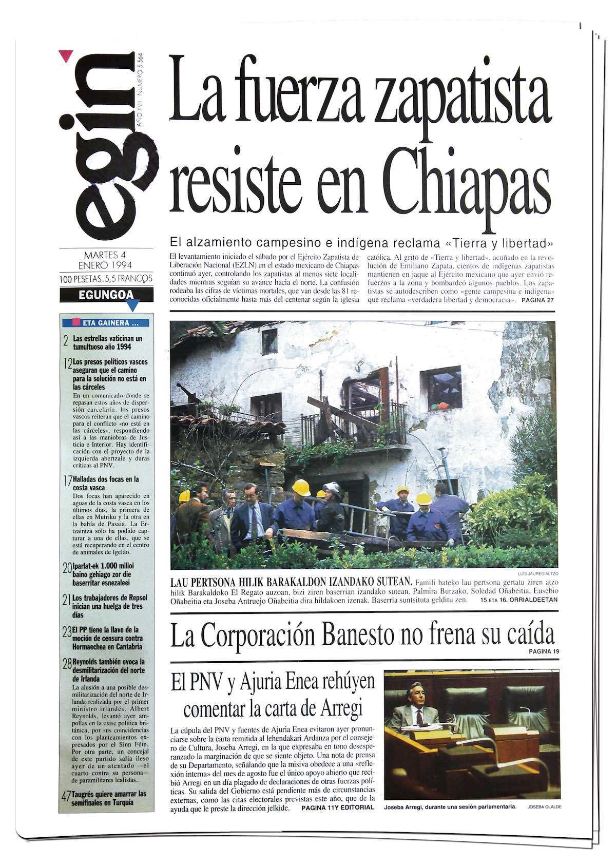 La fecha del 1 de enero tiene un potente significado iniciático, así que no es extraño que dé encaje a hechos de enorme trascendencia. Si 'Egin' hubiera nacido un par de décadas antes, sin duda habría dedicado sus principales páginas a la entrada de Fidel Castro en Santiago de Cuba, certificando el triunfo de la revolución. En 1994 costó algo más percibir lo que estaba ocurriendo 1.500 kilómetros más al norte del mismo continente, donde con el inicio del año se estaba desencadenando otra revuelta indígena absolutamente imprevista.