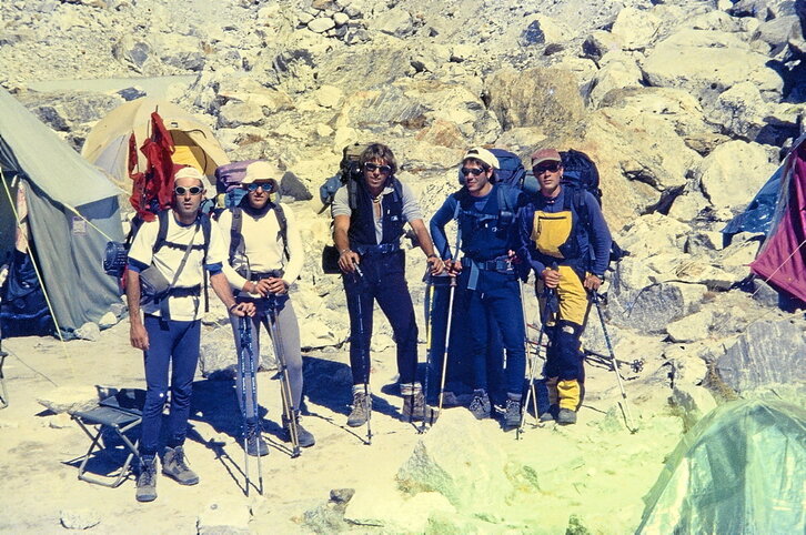 Pumori mendian elur-jausi batek harrapatuta hil zen boskotea: Beñat Arrue (Aizarna, 23 urte), Iñaki Aiertza (Aizarnazabal, 27), Aritz Artieda (Etxarri Aranatz, 23), Javi Arkauz (Lakuntza, 22) eta Cesar Nieto (Iruñea, 23). (Arrue-Gurrutxaga familia)