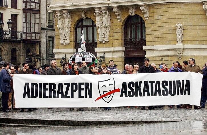 GARA eta 'Berria'-ko zuzendarien eta adierazpen askatasunaren aldeko elkarretaratzea Bilbon.
