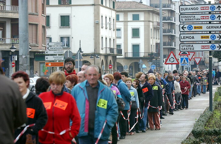 Umeak jolasten 'Non da Jon?' margoketaren ondoan Oiartzungo frontoian, udaletxean Jon Anzaren desagerketaren inguruko mozioa aurkezten zen bitartean.