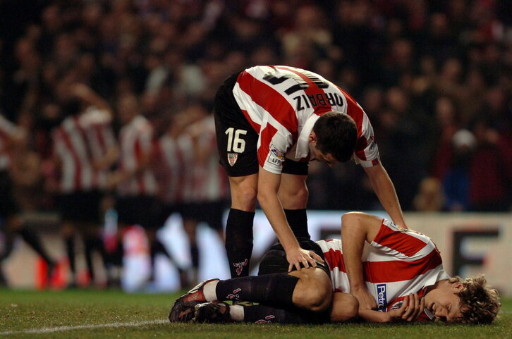 Pablo Orbaiz eta Fernando Llorente Athletic eta Valenciaren arteko futbol partiduan.