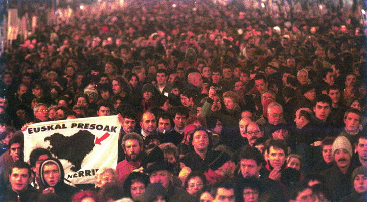 Euskal presoen aldeko manifestazio nazionala Iruñeko Sarasate Pasealekuan.
