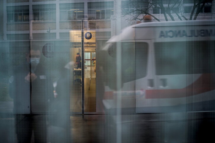 Iruñeko ospitaleko langileak maskarekin COVID-19a dela eta.