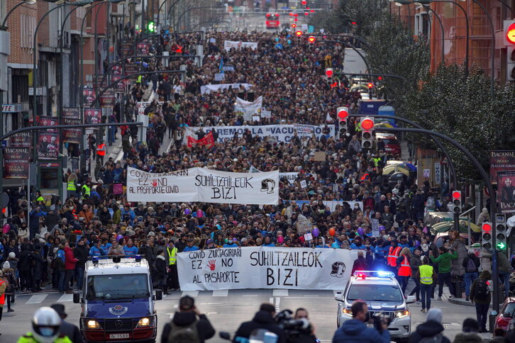 Bizitza plataformaren manifestazioa, pandemiaren aurkako neurriak salatuz.