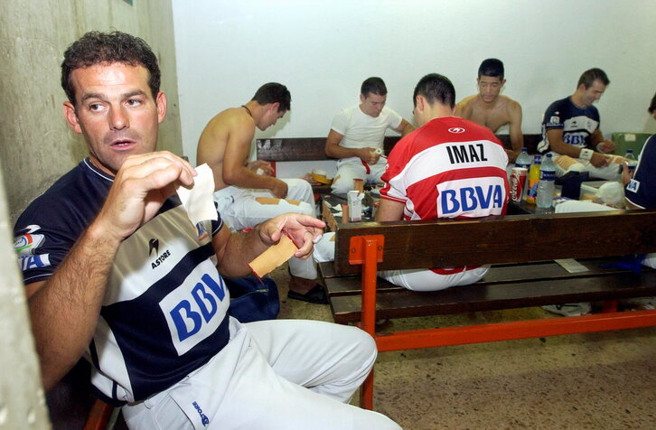 Titin III.a Ogeta pilotalekuko aldageletan takoak jartzen.