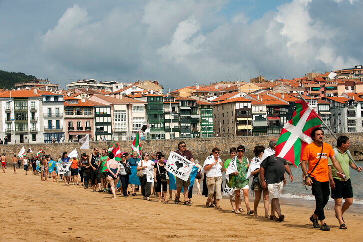 Etxeratek deituriko elkarretaratzea Euskal Herriko hondartzetan. Irudian, Lekeitio.