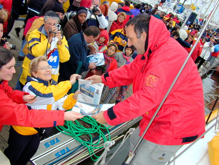 Didier Mundutegi posterrak sinatzen Sable D'Olone-eko portuan.