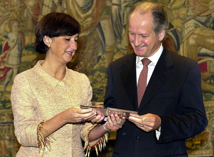 2002ko aurrekontu orokorren ematea Gasteizko Legebiltzarrean. Idoia Zenarruzabeitia eta Juan Mari Atutxa.