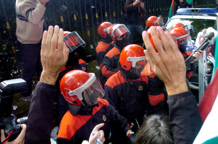 Caballitos enpresako langileen aldeko elkarretaratzea Ajuria Enean. Irudian, tentsio uneak.