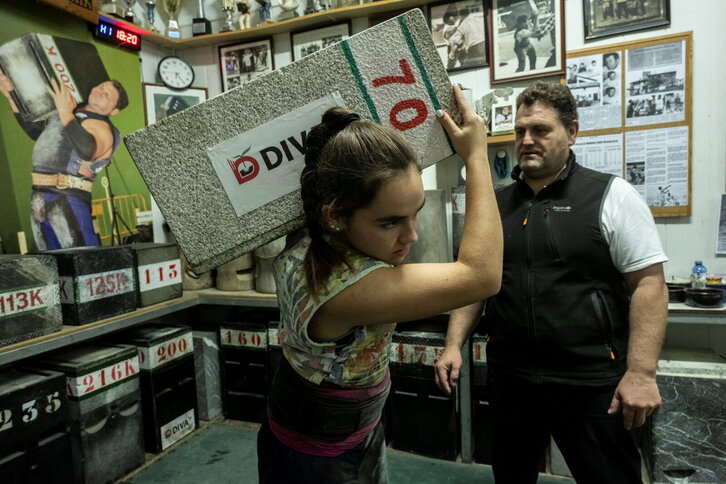 Joseba Ostolaza eta Udane Ostolaza harri jasotzaileak Aian.