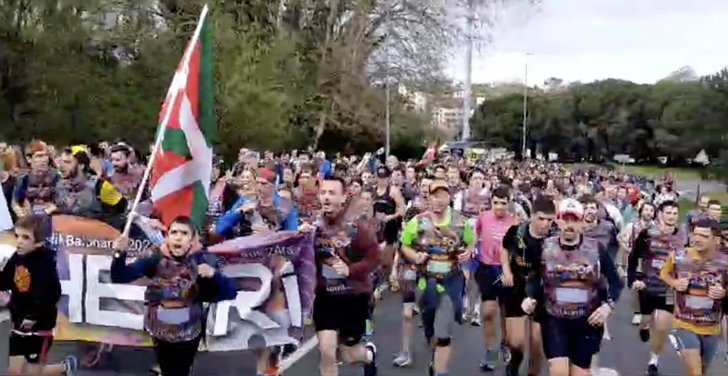 EH Bai eta EH Bilduko kideak elkarrekin Korrikaren buruan, hamar kilometro inguru falta denean.