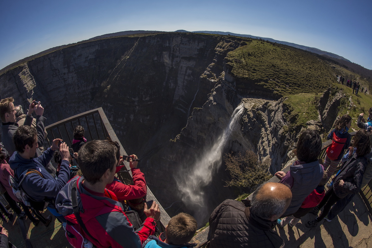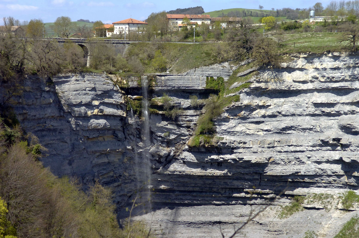 En este lugar que divide Araba, Bizkaia y Burgos encontramos la cascada donde nace el río Nerbioi, origen de la ría de Bilbao. Más de 300 metros de caída libre –es el salto de agua más alto de todo el Estado español– en el que el agua se difumina hasta chocar con la roca de la montaña. Hay que visitarlo tras una fuerte tormenta, lluvias o en el deshielo. Para llegar hay que tomar la carretera que nos conduce desde el centro de Urduña hasta la cima del puerto de mismo nombre. Desde allí, debemos seguir la carretera hasta encontrarnos con la entrada del Monte Santiago y los aparcamientos.