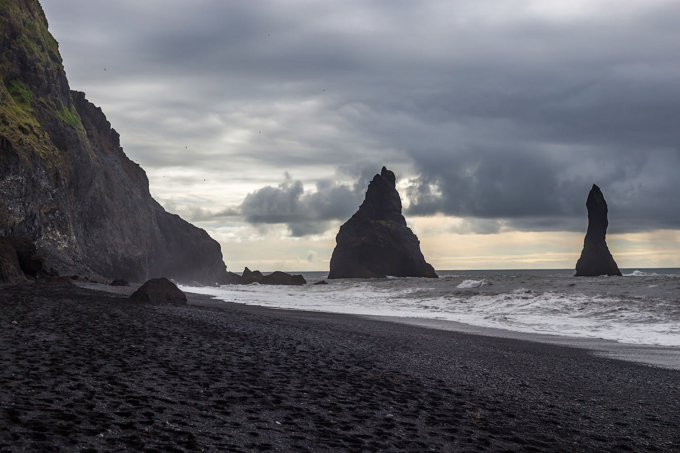 Acantilados de Vík y Dyrkhoaley. La pequeña población islandesa de Vík es el primero de nuestros santuarios de la naturaleza. Sus largas playas de arena negra en contraste con los verdes acantilados y las columnas pétreas como telón de fondo convierten este silencioso paraje en uno de los lugares preferidos para las poblaciones de frailecillos en el sur de Islandia.