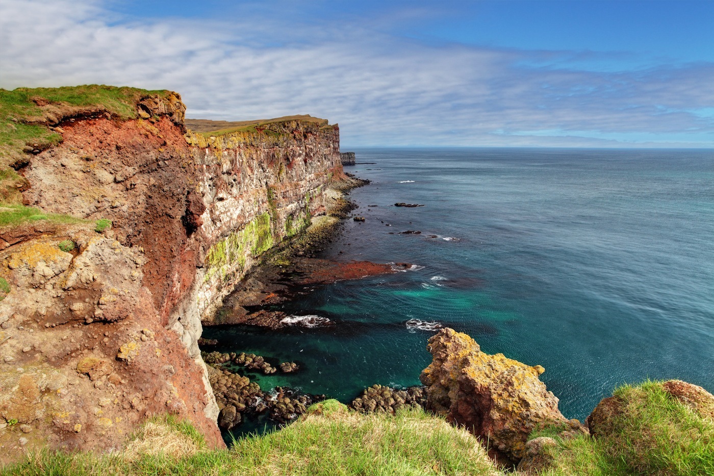 Esta pequeña península también es conocida por el nombre de la «pequeña Islandia» debido a que en su reducida superficie se dan ecosistemas propios de toda la isla. Coronando la península nos encontramos con el Snaefellsjökull, un volcán diferente a los del resto de la isla, formado por sucesivas erupciones explosivas. En su base se extienden grandes campos de lava cubiertos por el famoso musgo islandés y que, según la temperatura y las condiciones atmosféricas, cambia de un verde intenso a un apagado color ocre. El escenario nos da pie a meternos en la piel de Axel y Otto Lidenbrock –los protagonistas de ‘Viaje al Centro de la Tierra’–, surcar con ellos estos interminables campos de lava y explorar las cuevas que nos sumergen en las leyendas islandesas.