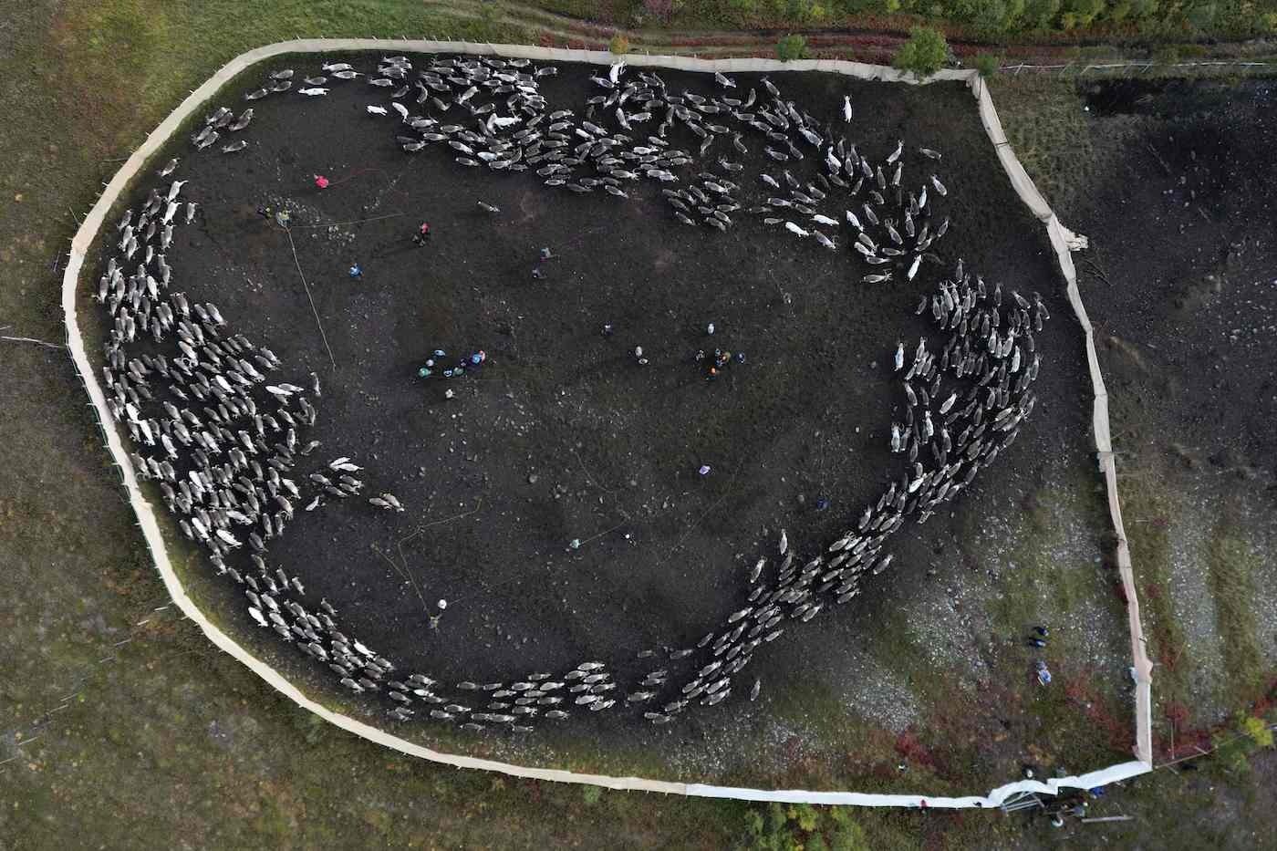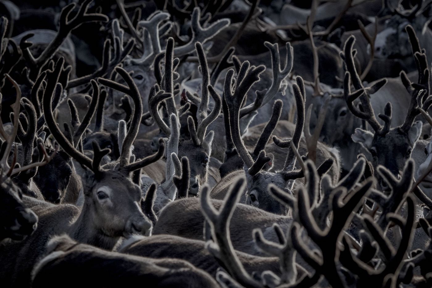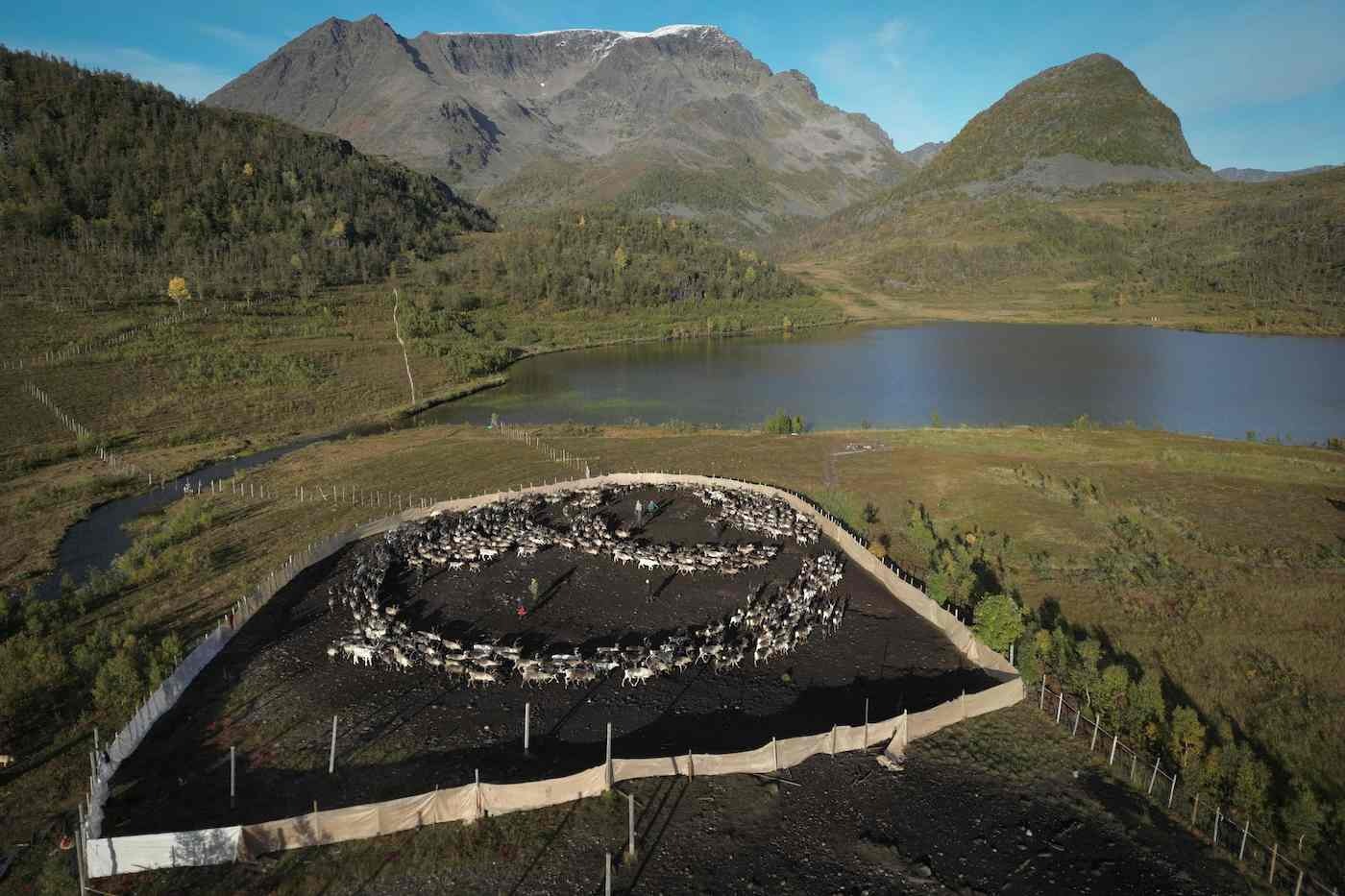 Durante 14 días un fotógrafo de AFP ha seguido a un rebaño de renos en su viaje de regreso desde las praderas donde pasan el verano boreal en la zona septentrional de Seglvik hasta Kautokeino. En su periplo, el rebaño contorneó dos glaciares y llegó a los pies del glaciar de Jokelfjord, la única formación de hielo de Europa que desemboca en el mar. Los renos son acompañados por pastores de la comunidad sami que los siguen en quad, a pie o en barco.