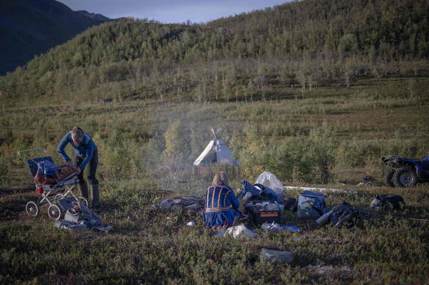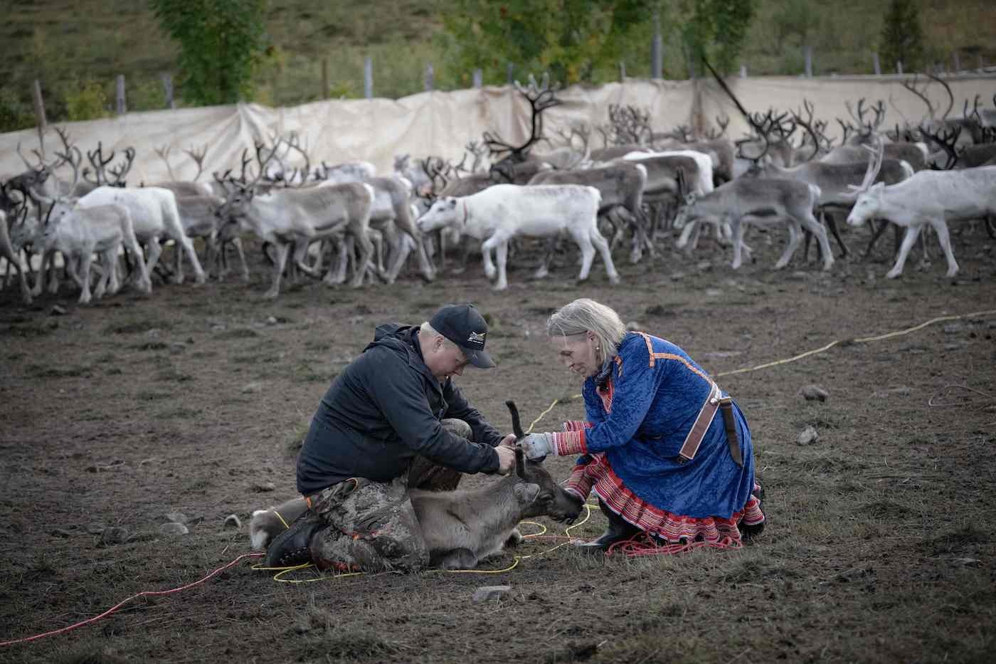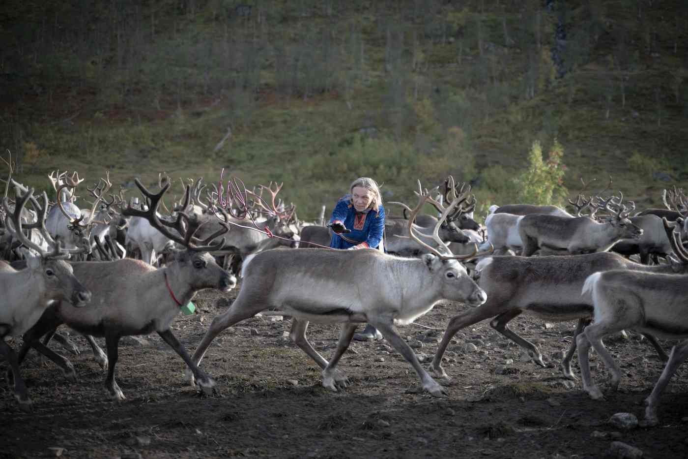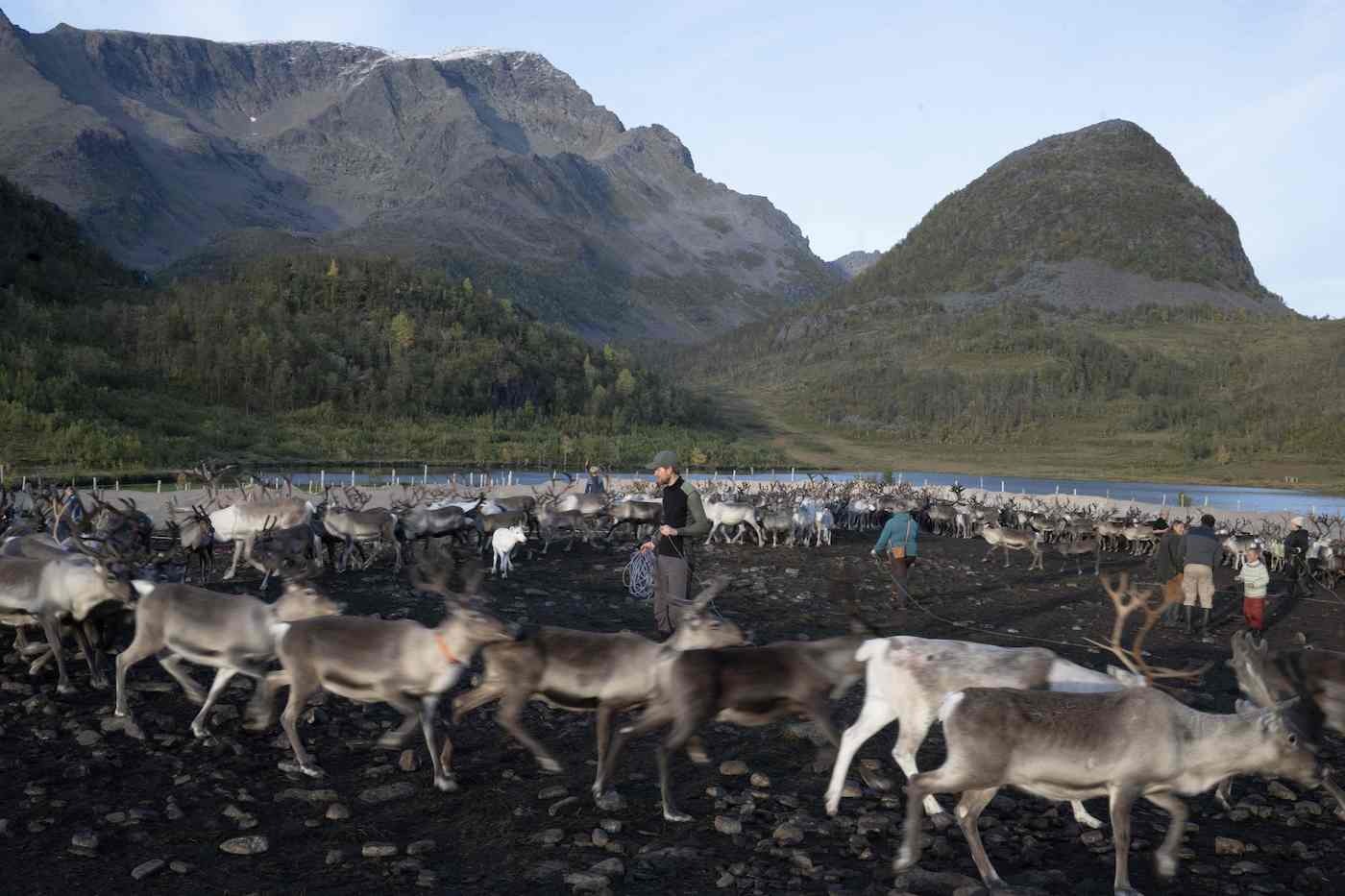 Uno de los momentos más espectaculares es ver a la gran manada de renos circulando mientras son colocados temporalmente dentro de un recinto para ser marcados e identificados por sus pastores, que a menudo realizan la travesía acompañados de su familia. Normalmente, todos tienen su papel.