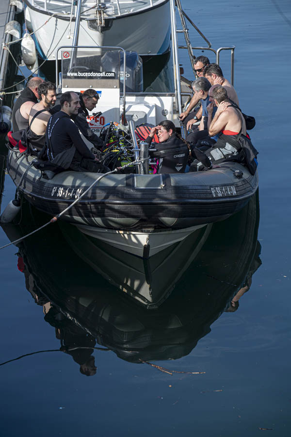Lo constatan en Buceo Donosti, un centro-escuela-tienda regentado por Óscar Mayor y Mari Paz López desde hace 20 años, durante los cuales han formado a cerca de tres mil buceadores. En puertas del verano, un viernes al mediodía en el que el calor aprieta, ya hay trajín en la sede ubicada en Pasai Donibane para un fin de semana repleto de excursiones que arrancará horas después con las inmersiones nocturnas y dejará las diurnas para sábado y domingo. Entre botellas de aire comprimido, trajes perfectamente ordenados, escafandras y adornos con motivos marinos, cuelgan en la pared numerosas fotografías de esos habitantes que constituyen la fauna y la orografía del Cantábrico.