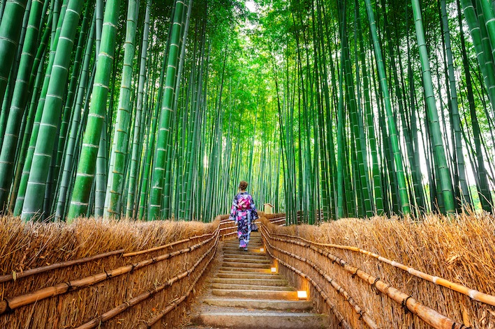 Después de caminar entre tantos templos, conviene descansar un poco. Y pocos sitios habrá más adecuados para ello que el bosque de Arashiyama, famoso por sus largos senderos repletos de bambú. Quien opte por adentrase en este misterioso paisaje seguro que disfrutará, más si cabe, tras conocer la siguiente curiosidad: el especial sonido suave de los troncos de bambú chocando entre sí ha sido incluido entre los «100 paisajes sonoros de Japón».