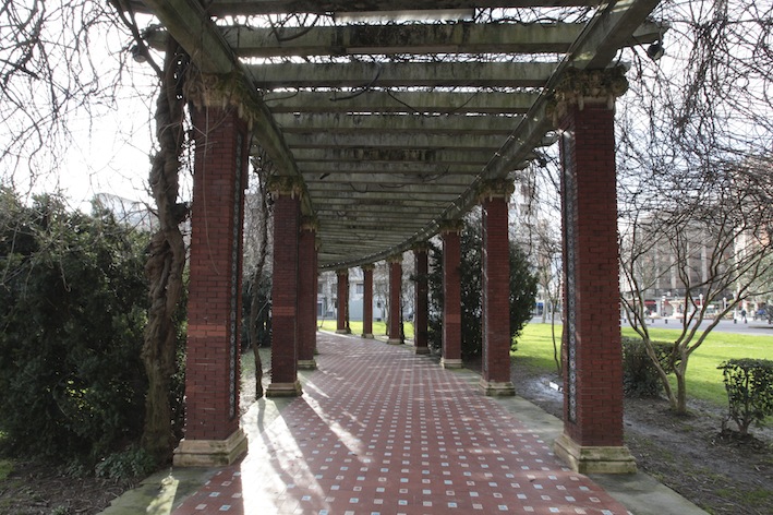 Y, desde allá, el paseante se dirigirá hacia uno de los elementos más simbólicos y referenciales del parque: su singular pérgola. Diseñada por Pedro de Ispizua, es un añadido al proyecto original que consiste en una plaza monumental ovalada con una gran fuente en el centro y una estructura singular de brazos entrelazados en los que se pierde agradablemente la mirada de quienes lo contemplan por primera vez. Además, la pérgola se convierte en escenario natural de actividades musicales y teatrales, especialmente durante el verano.