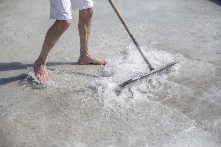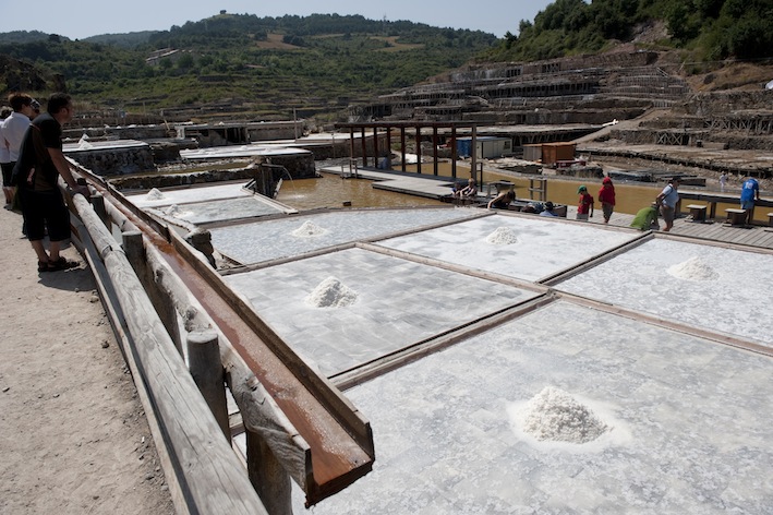 El proceso de elaboración arranca, normalmente, en mayo y finaliza hacia setiembre. Empieza con el llenado de las eras con salmuera que proviene de manantiales salados subterráneos y culmina con el envasado final. Por lo tanto, únicamente en esa época se puede participar en las visitas especiales que incluyen la experiencia de descalzarse y elaborar sal directamente en las eras.