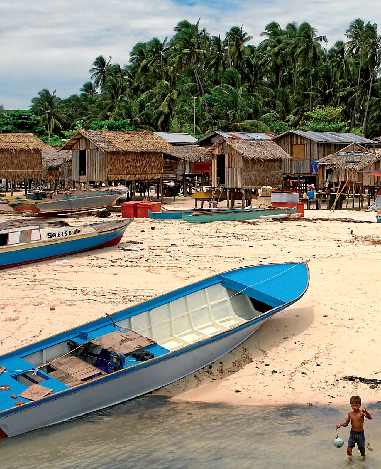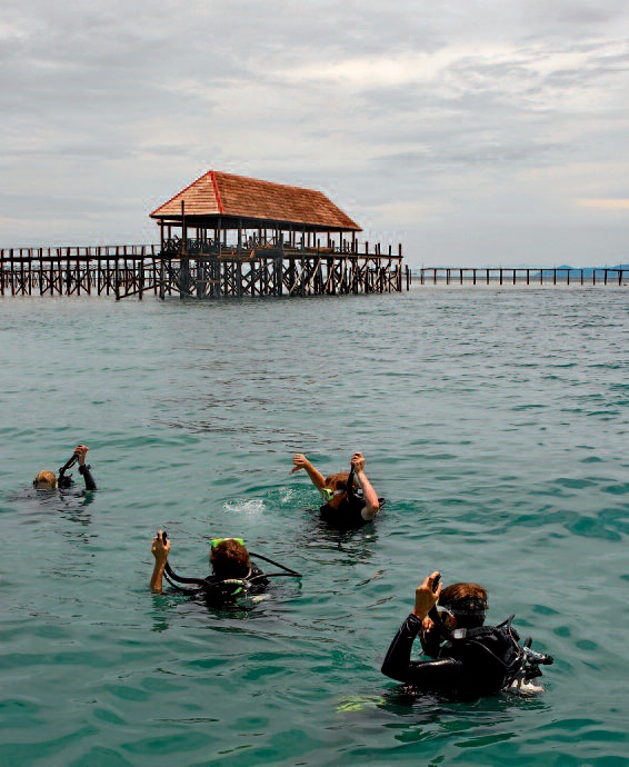 Erreserba aldez aurretik egin behar da, baina plazarik aurkitu ezean, beti geratuko zaigu beste leku batzuetan murgiltzeko aukera, esaterako, Kanpalain Mabul uharteko Sipadan Water Village resort-a. Ondoko orrialdean, jantzi tradizionala daraman neskato bat Sempornako Gateway Hotel Dragon-en eta turistak Gomatong leizeetan, Kinabatangan-en. edo Mabul uhartean. Hain zuzen, uharte horretan bajau laut tribukoak bizi dira; eta itsasoan ematen dute bizitza osoa, beraien etxeak ere ez dira erabat lehorrekoak, palafitoak baizik, uraren gainean jasotako eraikinak.