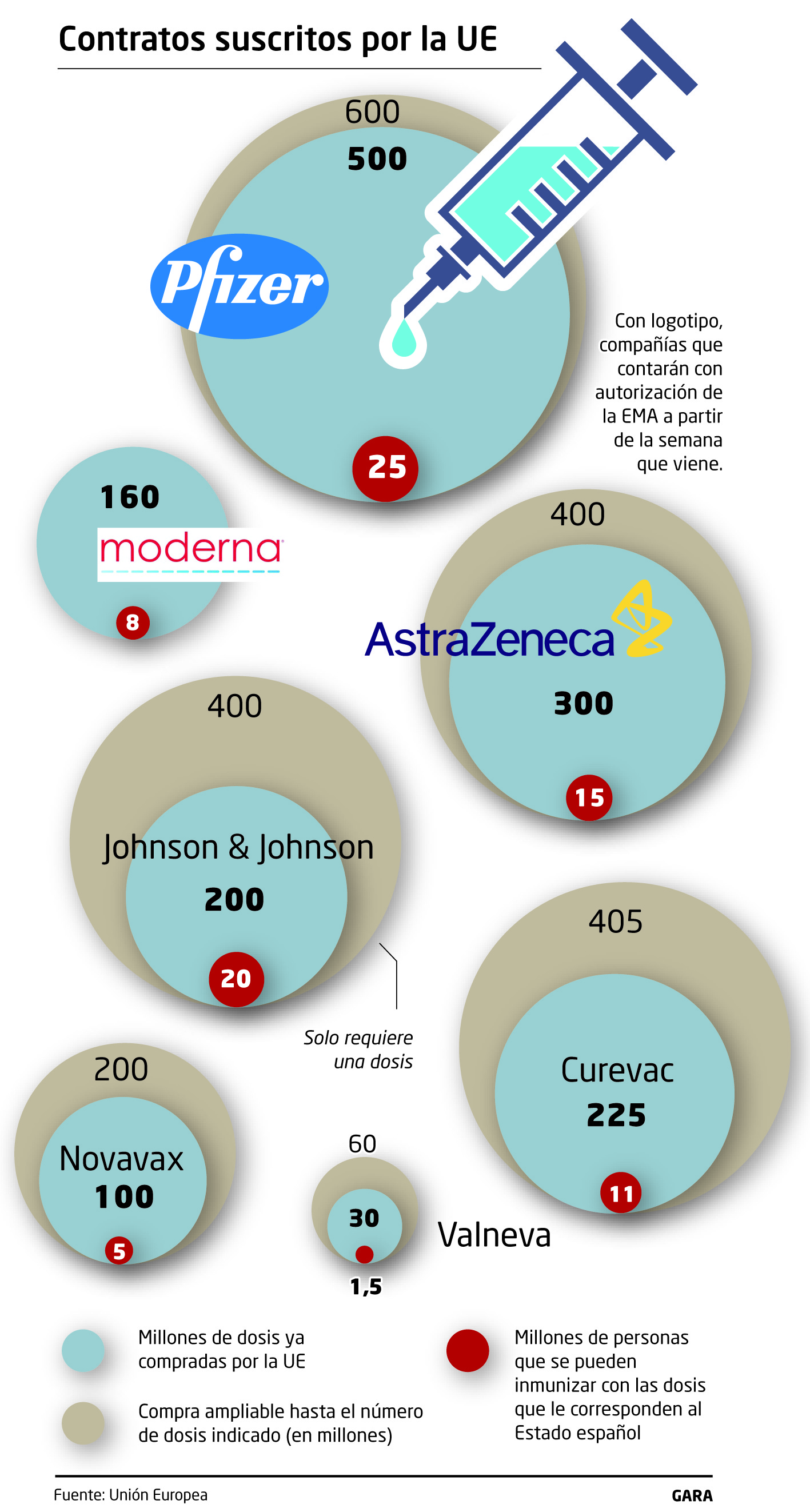 Por tanto, no sirve de nada fijarse únicamente en la cantidad de vacunas para la UE y calcular el porcentaje de cobertura que alcanzarían. Lo importante son los plazos, como el compromiso de AstraZeneca de entregar 40 millones en el primer trimestre (cobertura solo con esta vacuna de un 4,4% a finales de marzo).